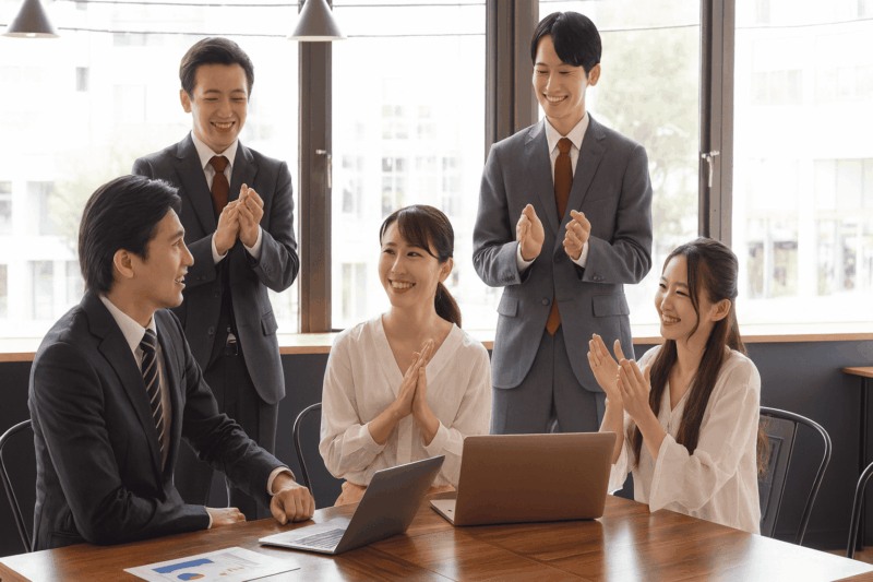 外向きの代表的な例としては、営業資料に載せる導入実績の一覧があります。「導入企業:○○社、△△社、□□社」といったロゴを見せることで、「あの会社が使っているなら安心そうだ」と感じてもらうわけですね。これは、権威性の法則と社会的証明の両方がきれいに効いています。