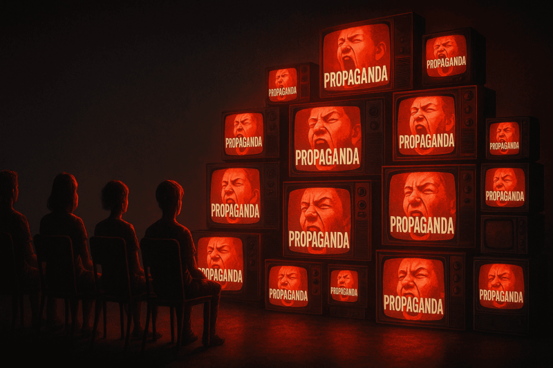 プロパガンダとは、特定の思想・信念・行動を人々に受け入れさせることを目的として行われる情報操作や宣伝活動のこと。客観的な事実よりも感情に訴える手法が多く、政治・戦争・広告などの分野で用いられる。主な目的は、大衆の意見や行動を意図的に誘導することにある。